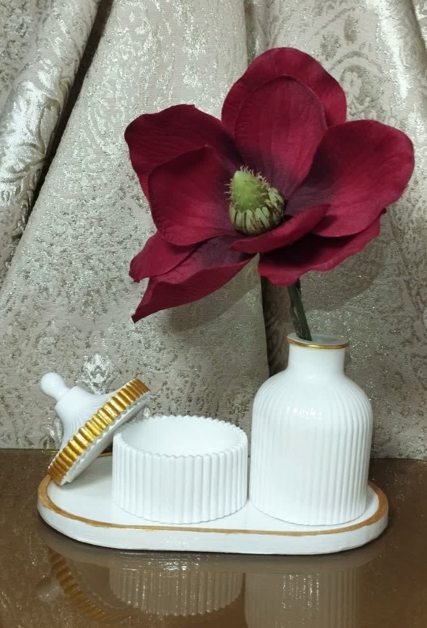 ست دکوری گلدان و قندان رنگ سفید و حاشیه طلایی۲۴۵٬۰۰۰ 10%
